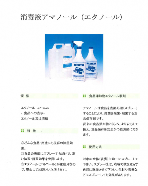 新型コロナウイルスにより、品薄状態であった、手指消毒液(エタノール)が再入荷いたしました。