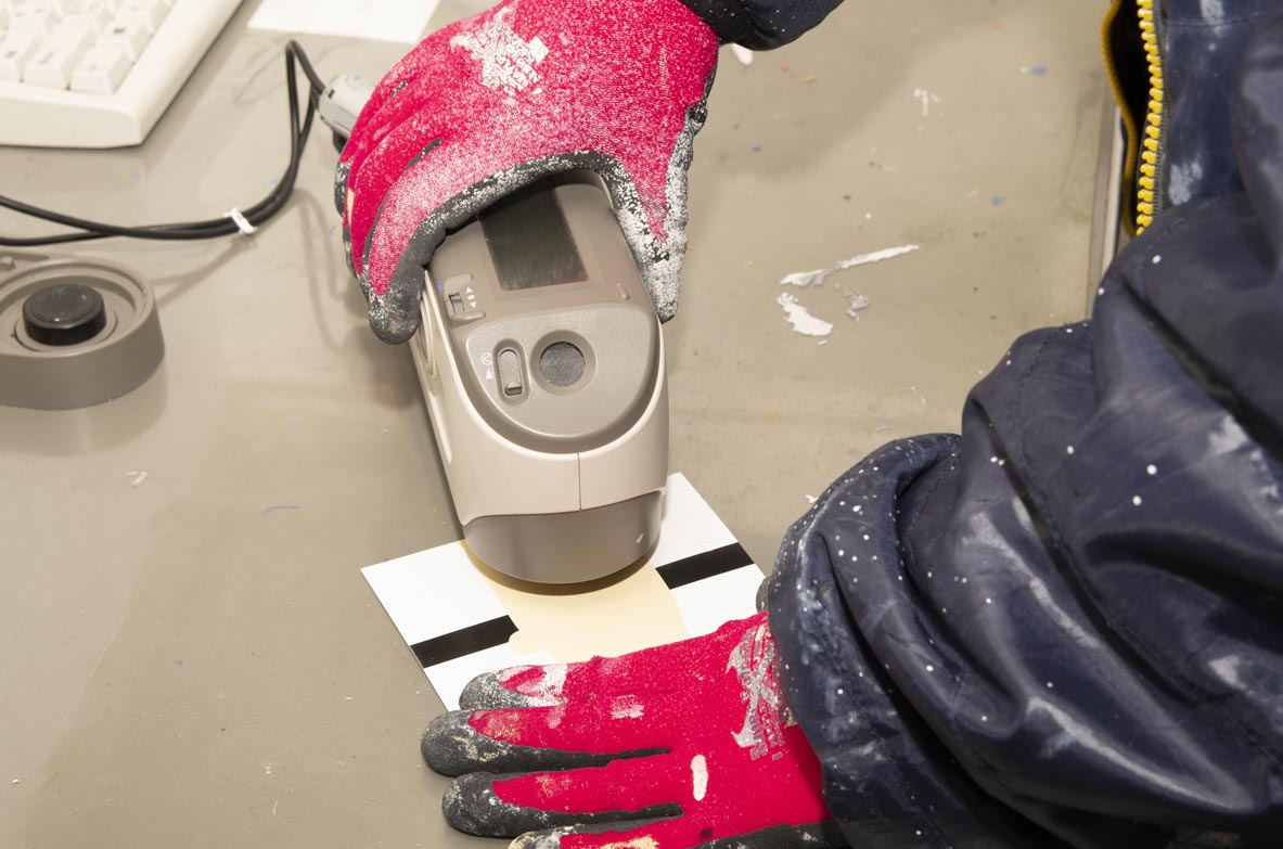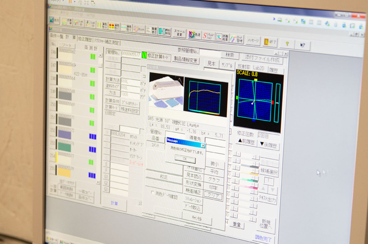 高性能センサーとコンピューターにより、調色を行うシステムです。主要素をデータとして数値化しますので再現性も高く、安定したカラークオリティでお届けできます。